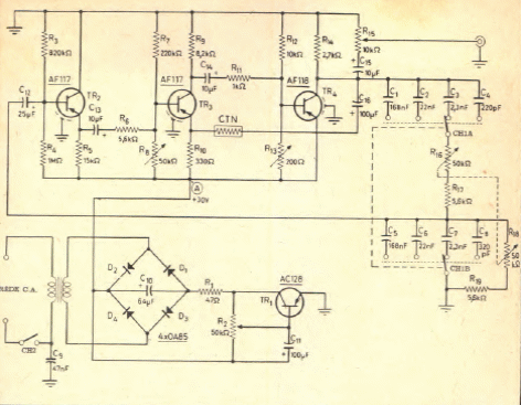 Found in Popular Electronics from March 1967, this circuit uses contemporary germanium transistors. The circuit generates signals from 20 Hz to 90 kHz.