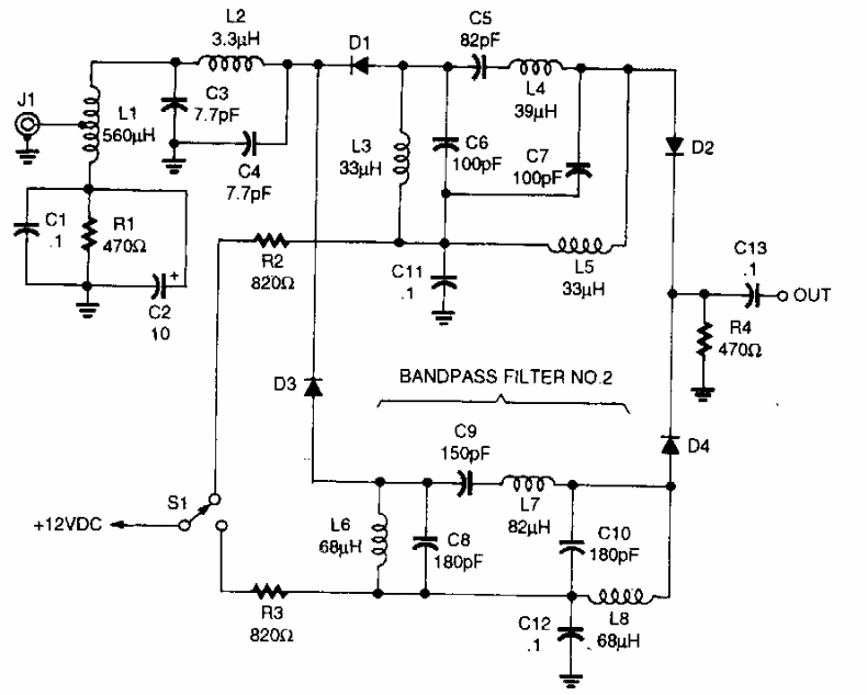 This switch or band selector for receivers was found in a Popular Electronics from the 1990s. The circuit uses a PIN diode.