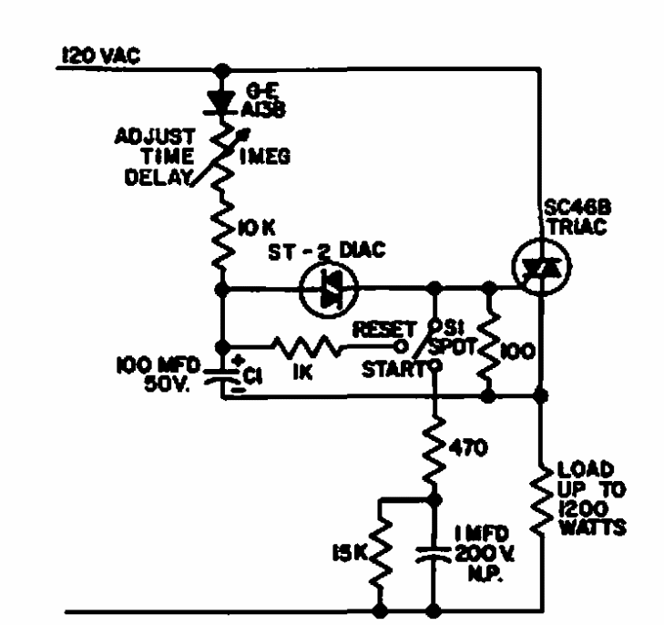 We found this circuit in a 1965 General Electric manual. The controlled load depends on the Triac and the 100 uF capacitor delay time.