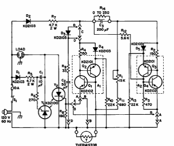 This circuit was found in a 1967 RCA SCR manual. It uses period components that can be replaced with modern equivalents.