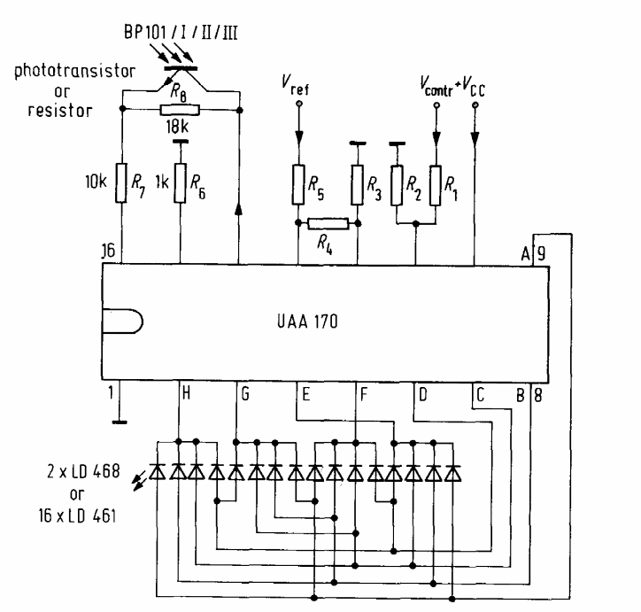 This UAA170 application circuit was taken from Siemens' own integrated circuits manual from 1976. The maximum supply voltage is 18 V.
