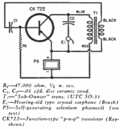 This blocking oscillator that appears elsewhere on this site from other sources, was found in a Raytheon manual from the 60s. The transistor is a germanium type.