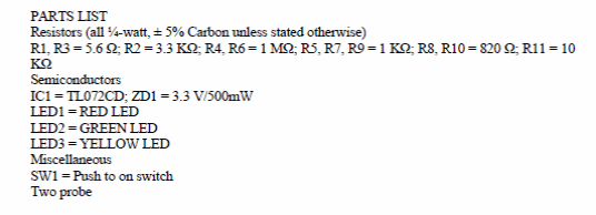 This circuit was obtained from an English circuit manual. Components are common and LEDs can be 3 different colors depending on battery status indication.