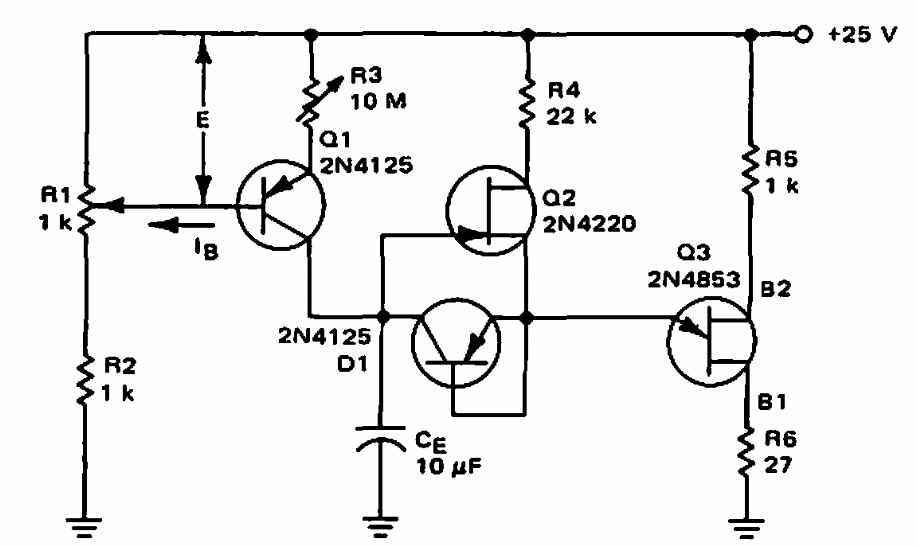 This circuit was found in a Motorola documentation from 1968. The circuit makes use of FETs and bipolar of the time and can be applied to modern equivalents.