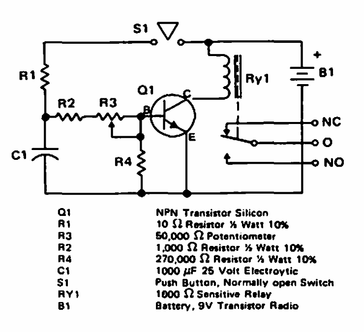 This circuit was obtained from an old American documentation, and practically any general-purpose transistor and sensitive relay can be used according to the supply voltage.