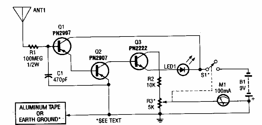 This circuit was found in a Popular Electronics from the 90's. Its purpose is to detect the ionization of the air. The meter can be replaced by the current scale of an ordinary multimeter.