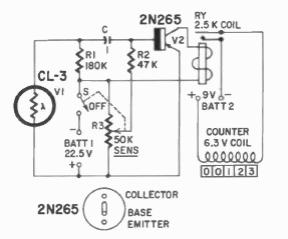 Found in a 1960 Gernsback documentation, this circuit triggers an electromechanical counter of the type used in equipment of the time.