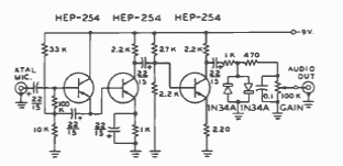 This limiting circuit for crystal microphones was found in documentation from 1977. Transistors are general-purpose types at the time.
