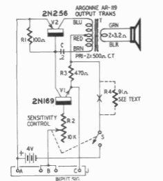 Suitable for general use and alarms, this Hartley oscillator circuit from a 1960's Gernsback documentation uses germanium transistors. The transformer is an audio output with a center jack.