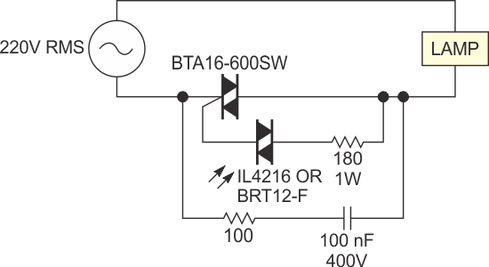 This circuit shows how to use a Vishay IL4216 or IL12-F optodiac to control a triac in a common control. The circuit can operate with devices for the 110 V network.