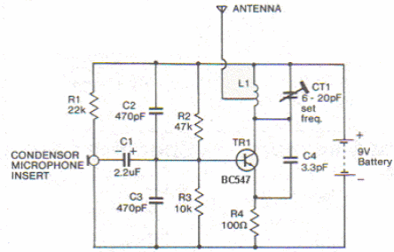 While BC547 is not a suitable transistor, it can work on this circuit. The ideal would be the BF494. The beret has 2 + 2 turns of thread 28 or 30 in the form of 1 cm without core.
