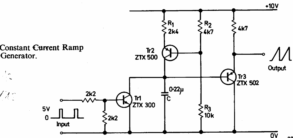We found this circuit in Ferranti's 1974 transistor manual. Transistors are general-purpose types at the time.