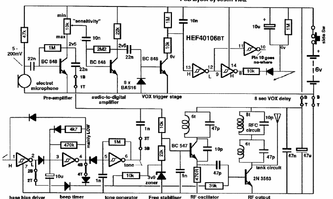 We found this circuit in an Australian documentation from 1991. The circuit is suitable for SMD mounting thus making it very small. The circuit was sold in a kit at the time.