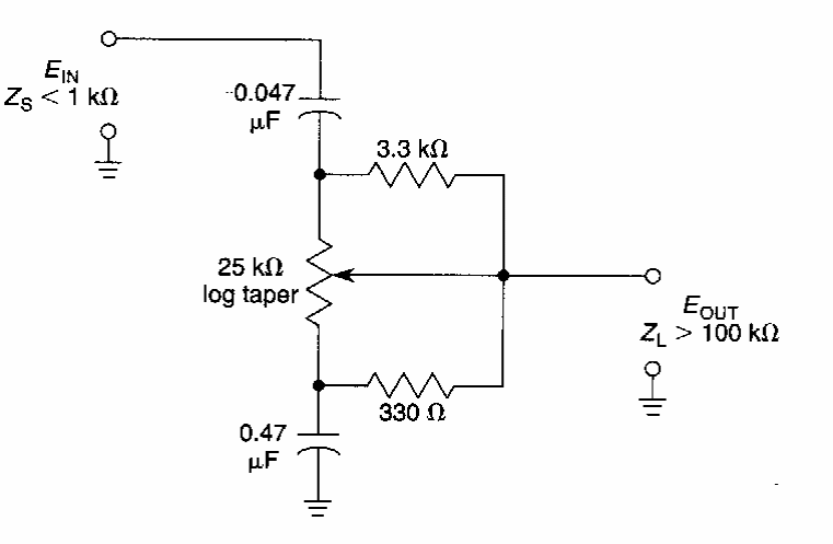 This passive circuit was found in old American documentation. It can be added to any amplifier input since having losses of 20dB.