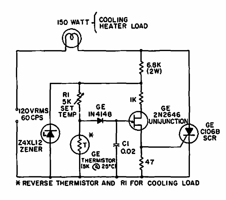 Found in a 1965 General Electric documentation, this circuit is intended to control a 150 W lamp used as a heating element for developing photos.