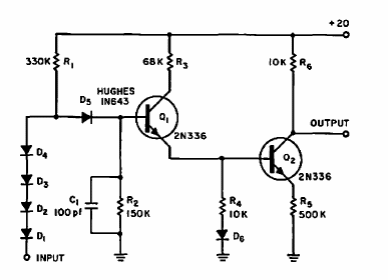 Found in a 1964 publication, this circuit makes use of transistors from the time. It operates on frequencies up to 3 kHz.