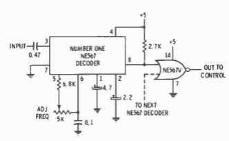 In the figure we have a basic PLL circuit with the LM567 or equivalent. The circuit is from a 1977 documentation.