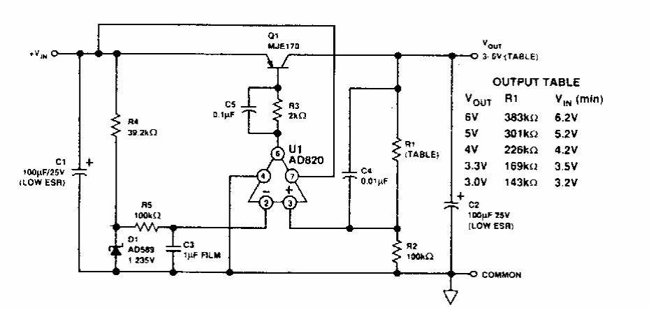 This simple LDO, or low voltage drop regulator was found in an Electronic Design from the 90s. The circuit uses components from the time.