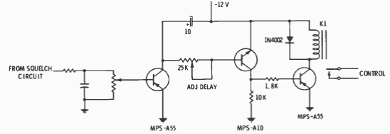 Found in a 1977 publication this circuit is relayed from a signal carrier in a receiver. Transistors are common types at the time.