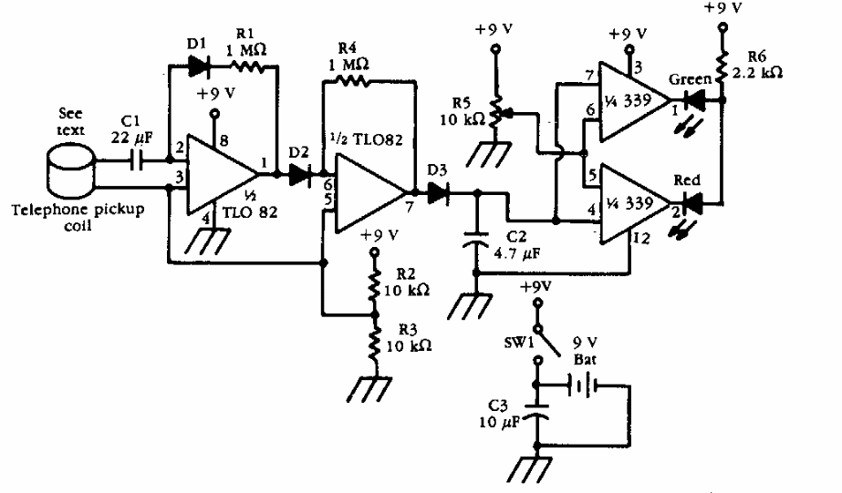 This circuit monitors extra-low frequency (ELF) fields. We found it in an American documentation from the 90s.