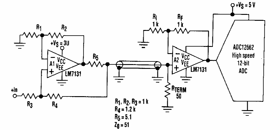 Found in an Electronic Design from the 90s, this circuit uses components from the time. It is intended for coupling with 50-ohm cables.