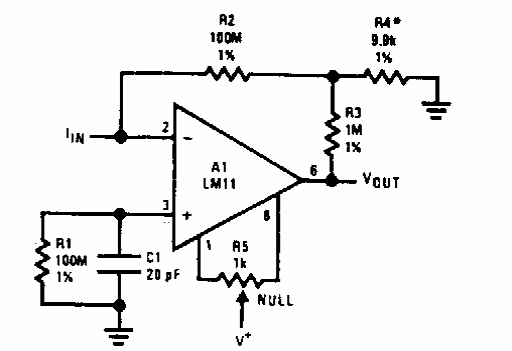 This circuit multiplies the input resistance of an operational amplifier. As the indicated components the input resistance of this circuit is 100 Gohms. The circuit is from a 1990s National Semiconductor manual.