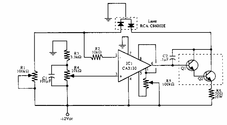 We found this circuit in an American publication from the 1990s. The circuit has a Darlington stage to drive a high-power LASER diode.