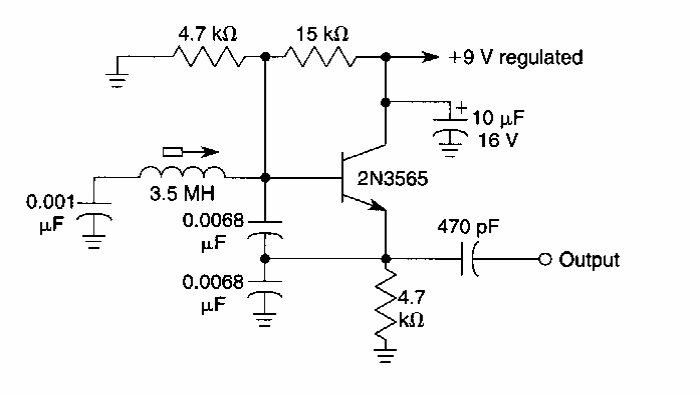 Found in American documentation from the 1990s, this circuit can generate signals of up to a few tens of megahertz. The transistor must be suitable for high frequencies.