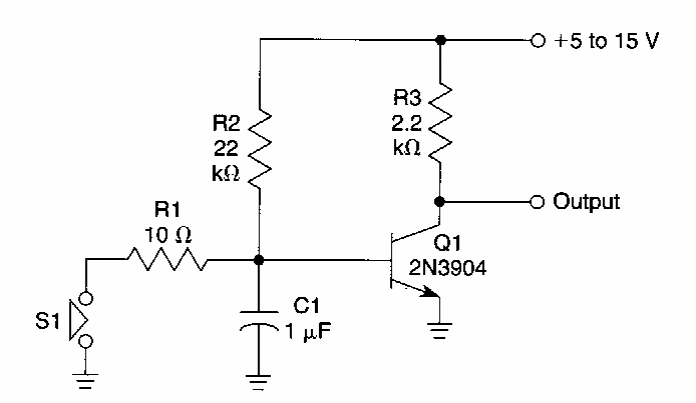 The circuit shown was found in American documentation from the 1990s. The transistor can be of any general-purpose type.