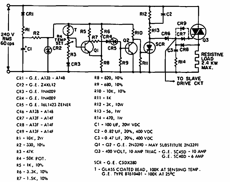 This semi-proportional temperature control was found in old American documentation. The components are from the period and the maximum power of 2.4 kW.