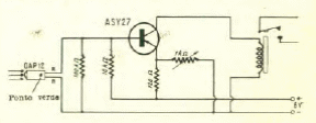 We found this circuit in Popular Electronics from January/February 1969. The circuit must be supplied with voltage according to the relay. The transistor is from the time.