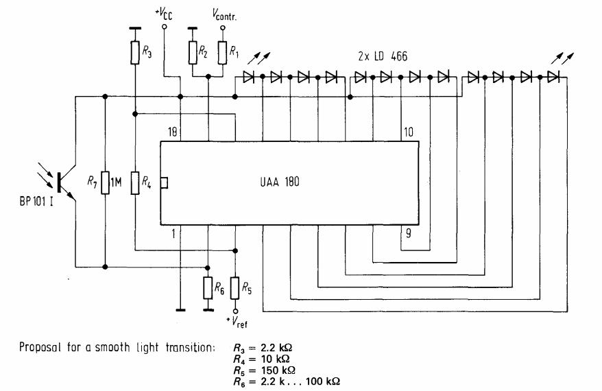 We found this range of LEDs with the UAA180 in the 1976 Siemens Integrated Circuits manual. The maximum supply voltage is 18 V.