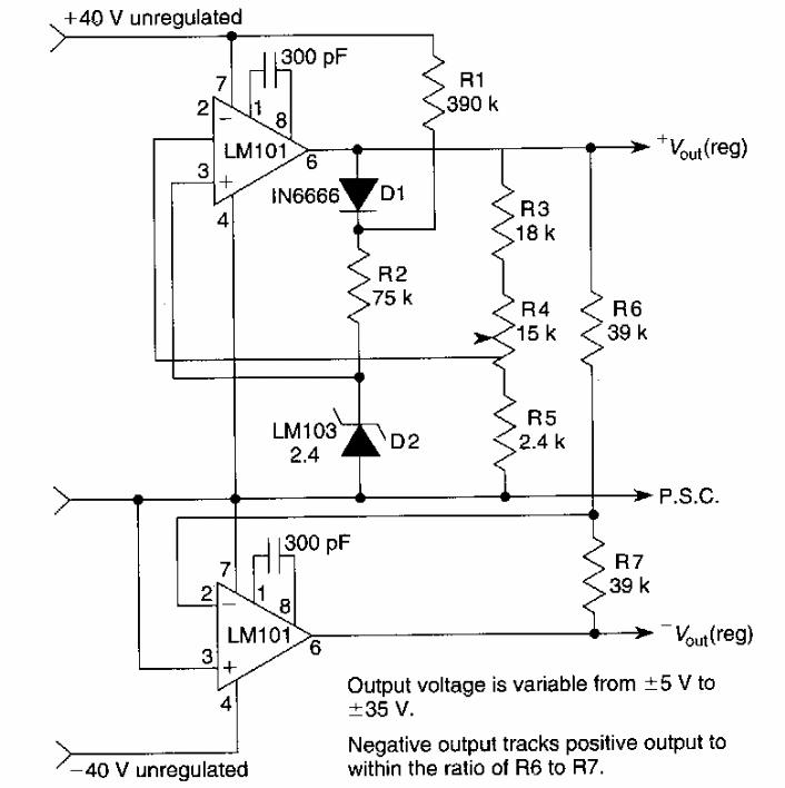 This circuit was found in National Semiconductor documentation from the 1990s. Operational amplifiers admit equivalents.