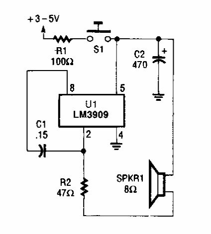 This circuit with the LM3909 can be powered with voltages from 3 to 5 V. We found it in a Popular Electronics from the 90s.