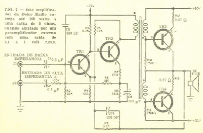 The critical component of this 1967 amplifier is the driver transformer. The circuit has both high and low impedance input.