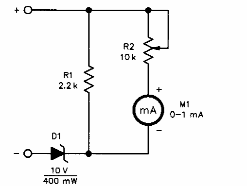 This circuit was found in a QST from the 1990s. The circuit expands the scale of a 10V instrument to measure 20V.