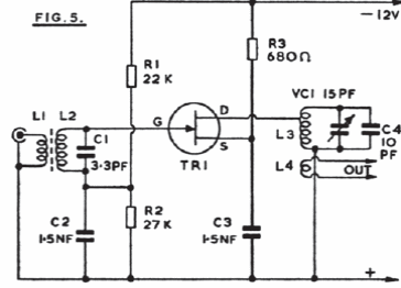 Found in old English documentation this circuit can be made with a BF245 or equivalent. Coils are according to FM band or other.