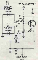 Found in a Popular Electronics from 1992, this circuit has two output voltages given by the selection of the zener diodes. The transistor is a power type.