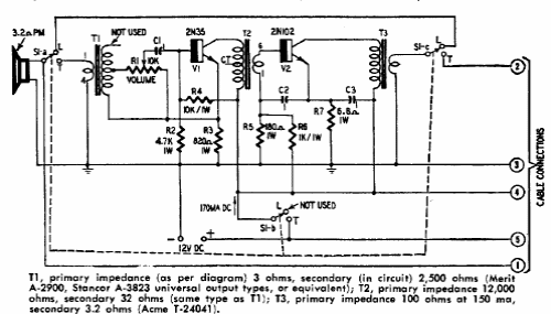 This circuit is from a publication from the 60's. The transistors are germanium of the time. Transformers are commercial types of the time.