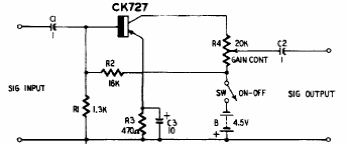 This circuit is from a documentation from the 50's. The transistor is a Germanium PNP from the time. The voltage gain is just over 90.