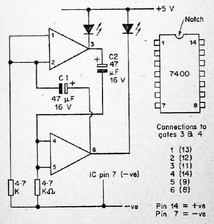 This well-known configuration that appears elsewhere on the site is from an English documentation. In it, the original adopts the symbol of the NAND gate of the 7400 as operational.