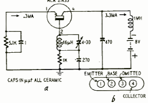 This transistorized oscillator was published in the July 1953 issue of Radio Electronics. High-frequency transistors were still new at that time.