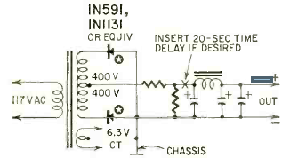 This power source with silicon diodes at a time when valves were still used was found in Radio Electronics magazine from July 1959. The diodes depend on the transformer as well as the voltage.
