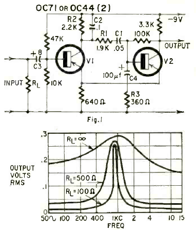 This circuit for recognizing a frequency with a narrow range was found in Radio Electronics magazine from June 1961. The frequency range depends on R as shown in the graph.