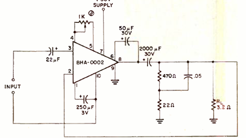 This circuit is from a Radio Electronics from September 1969. The integrated circuit used is one of the first power integrated circuits available on the market. The circuit follows a configuration that lasted for a long time.