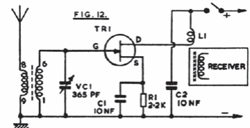 This booster for bands up to 30 MHz, depending on the coil, works by approximation. It is suitable for portable receivers. The transistor can be the BF245 or MPF102.