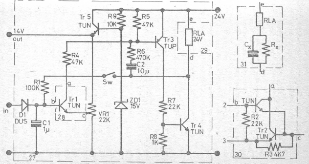 We found this circuit in an English documentation from the 80's. Transistors are general-purpose types.
