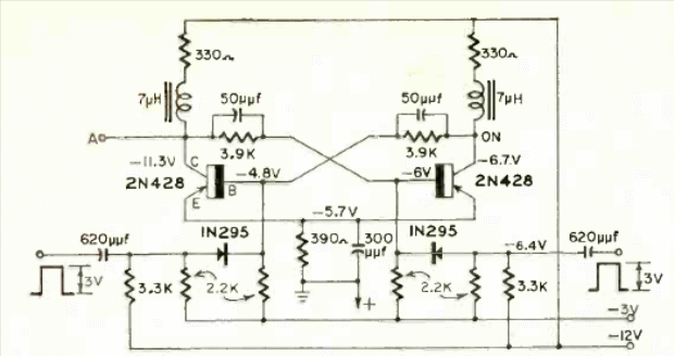 This circuit was obtained from Radio Electronics magazine in May 1958. The circuit uses transistors of the time triggering with the indicated intensity signals.