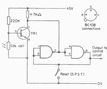 This latched circuit uses an LDR as a sensor. It must be powered by a voltage of 5 V.