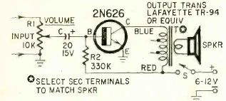 The transistor used is one of the first power Darlingtons with a collector current of 3 A. The stage shown appeared in the June 1961 Radio Electronics magazine.